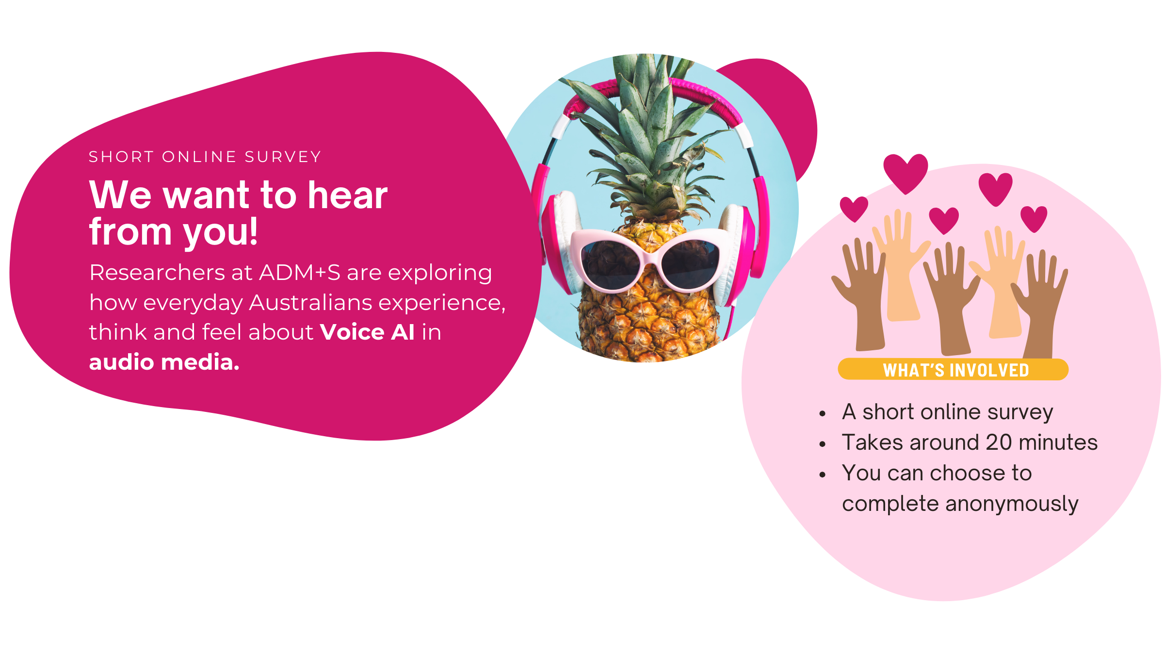We are therefore conducting a pilot survey via an online questionnaire, to determine how everyday Australians experience, think and feel about Voice AI in audio media. Our survey will help us understand how laypeople think and feel about these technologies, which is essential for us to design future research that is targeted and useful.